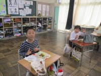 訓練地震!給食の時間。5時間目の様子。