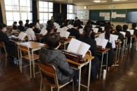 大正琴の体験実習の2日目です。今日は2組と3組の人たちが体験をしました。話を聞...