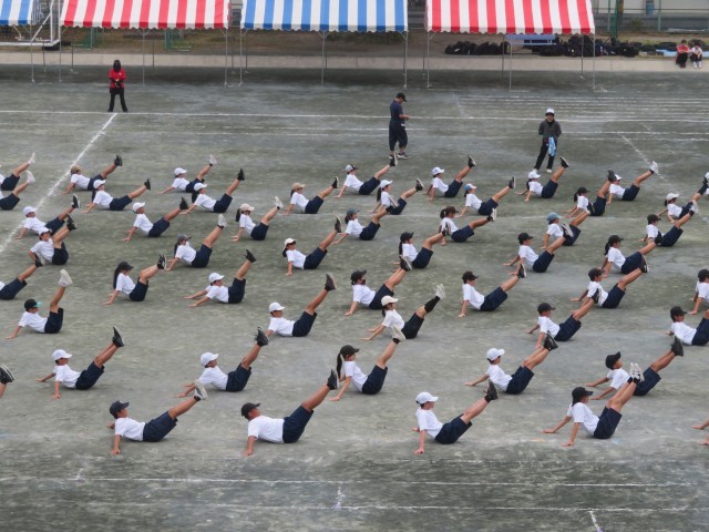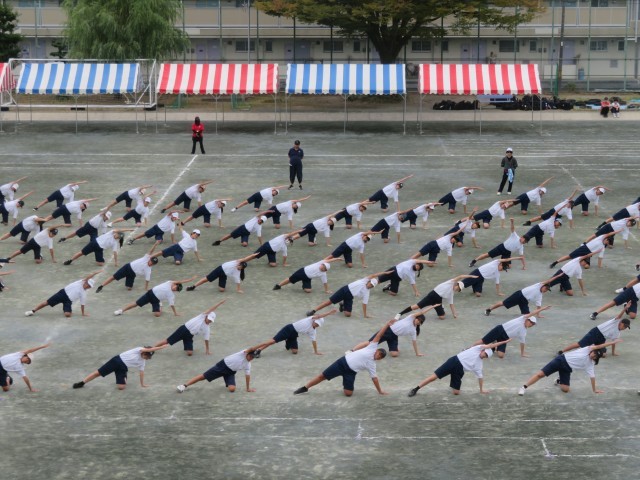 1年生は、体育祭に向けて「北中体操」の練習をしました。来週の本番が近くなり、練習に熱がこもってきました。当日に心を込めて最高の演技を目指します。