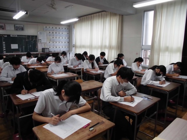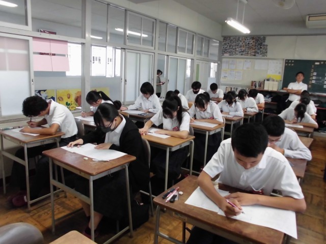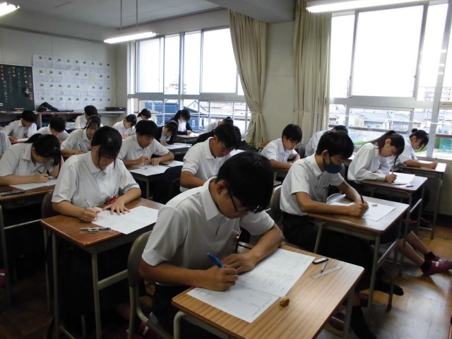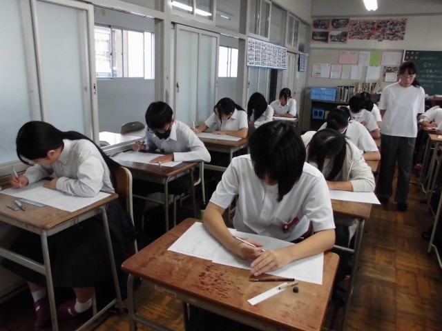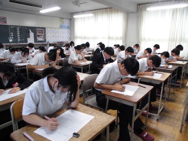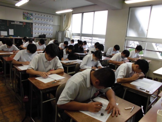 3年生は4科テストに臨んでいます。1時間目に家庭・技術・美術、2時間目に保体・音楽と1日日程のテストに対して、生徒たちは、先週まで放課の時間にクラスメイト同士で問題を出題し合ったり、自主勉ノートにまとめたりするなどテスト勉強に取り組んでいました。これまでの努力が最高の結果となるように、最後の最後まで頑張ってほしいと思います。