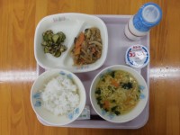 ひきずりは、とり肉を使ったすきやきのことです。愛知県尾張地方の郷土料理で、なべの上で肉をひきずるようにして食べたことから「ひきずり」と呼ばれるようになりました。今日は、焼き豆腐、こんにゃく、かまぼこ、はくさい、にんじん、ねぎと一緒に煮込んでいます。味わって食べてください。