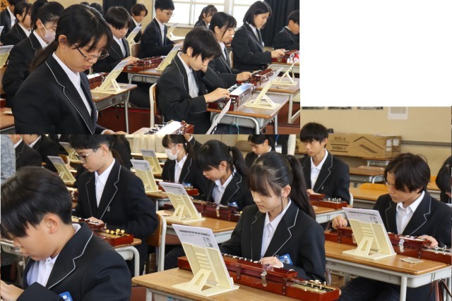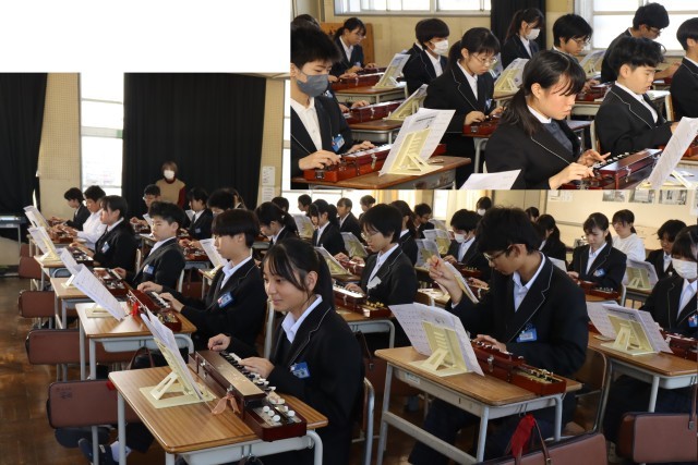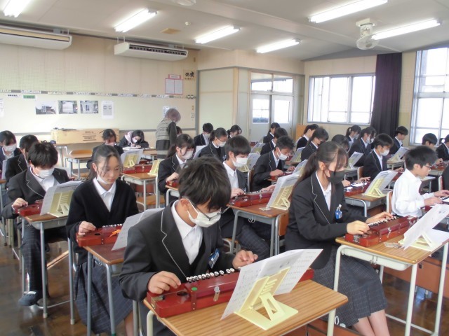 本日も講師の方に来ていただき、大正琴の体験をしました。昨日4組、今日5組6組の人たちが体験をしました。今まで体験したことがない楽器でしたが、真剣に話を聞き、演奏することができていました。