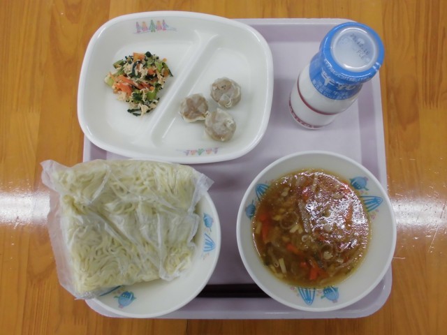 五目あんかけラーメンの「五目」とは、さまざまな種類の食材が入っているという意味で使われます。今日の五目あんかけラーメンにも、ぶた肉、なると、はくさい、にんじん、たけのこ、もやし、ねぎ、干ししいたけなどたくさんの食材が入っています。