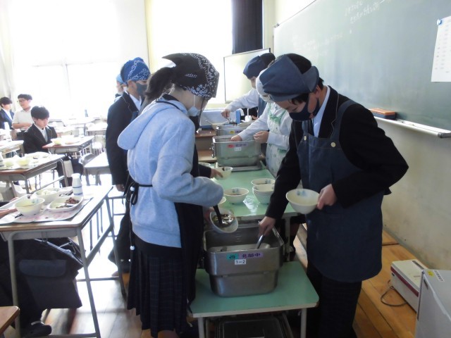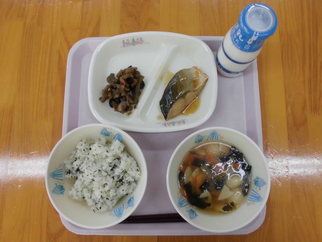 今日はおせち料理に入る縁起のよい食材が使われています。ぶりは出世魚で「出世を願う」、黒豆は「まめに働く、まめに暮らす」、ごぼうは「長生き」や「安定」、れんこんは「先を見通す」という願いが込められています。雑煮もお正月や鏡開きで食べられています。もちはよくかんでゆっくり食べましょう。