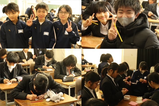 今日から3年生を送る会の準備が始まりました。今日は3年生の先輩に渡すしおりと花を作りました。楽しそうな雰囲気の中にも、3年生の先輩方に感謝の気持ちを込めて真剣に作っていました。