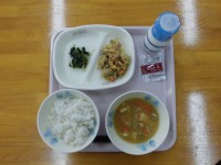 ひじきは昔から食べられている海そうの一つです。ひじきには葉の部分を使った芽ひじきと、茎の部分を使った長ひじきがあります。今日のひじきは芽ひじきを使っています。ひじきには、血液を作るもとになる鉄分と、骨を丈夫にしてくれるカルシウムが多く含まれます。成長期のみなさんに食べてほしい食材の一つです。