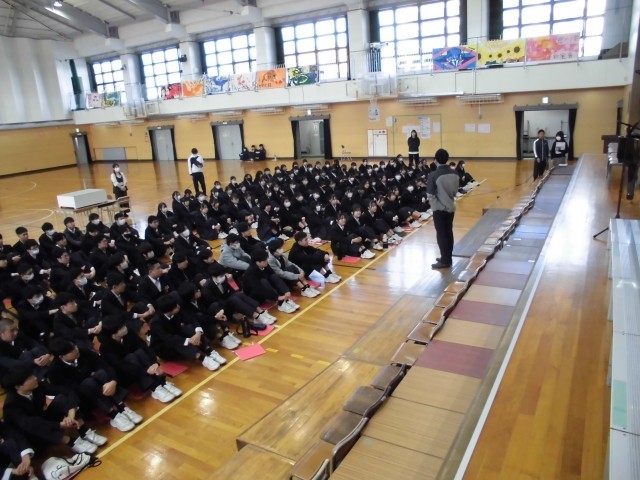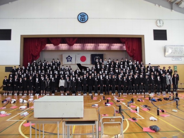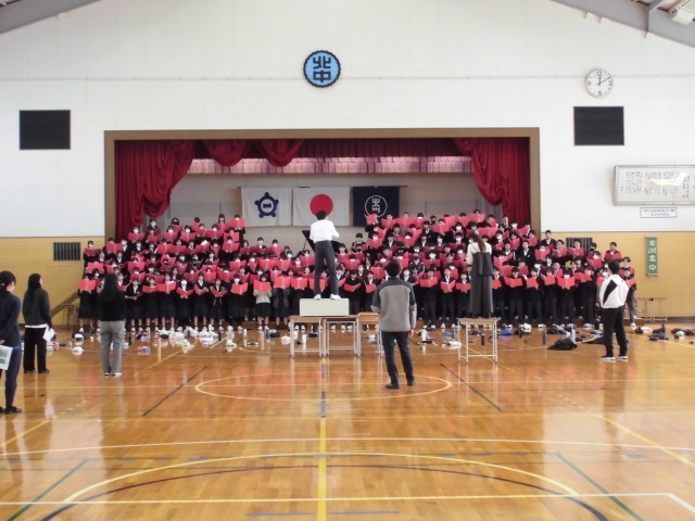 本日4限は、体育館にて送る会の歌練習を行いました。