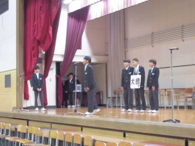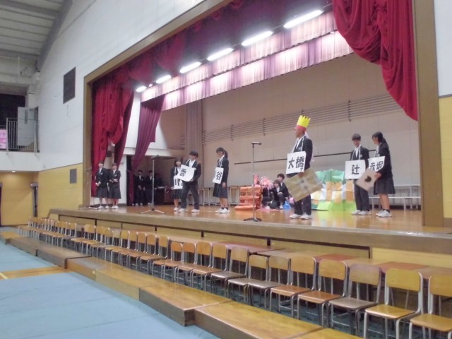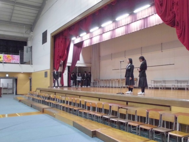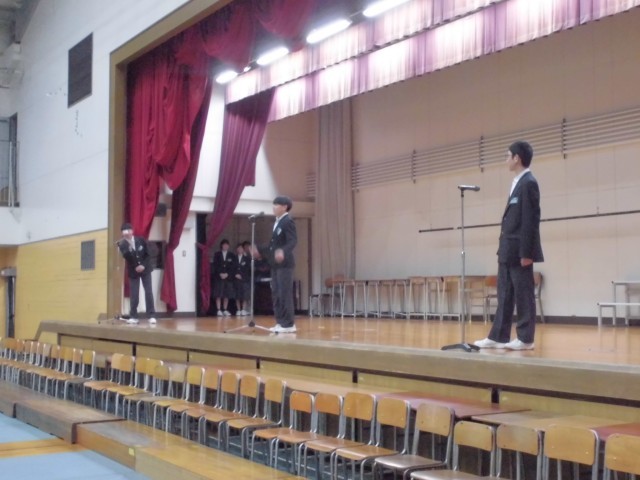 今日は5時間目に明日開かれる「卒業生を送る会」の出し物のリハーサルを行いました。