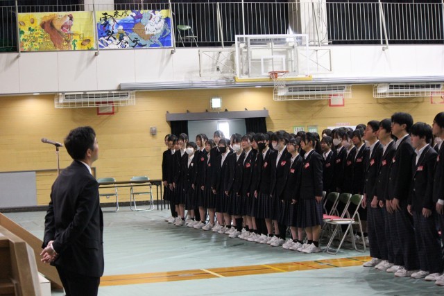 明日の卒業式に向けての予行練習と、合唱、修了式の様子です。