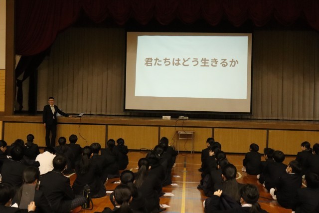 先週に続き「君たちはどう生きるか」というテーマで、別の先生から話を聞きました。失敗をしないように逃げるのはダメです。「失敗を次に生かすことが大事」と先生の経験談を交えながらの話をみんなは真剣に聞いていました。