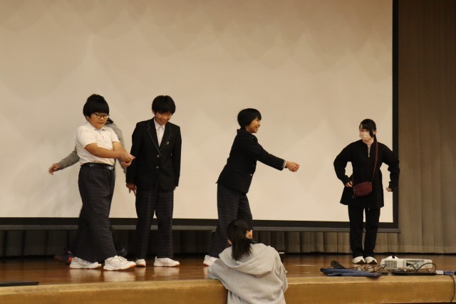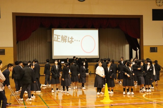 1年生もあと残すところ一日となりました。今日は1時間目に学年レクを行いました。いろいろな形でのレクチャゲームや先生についての〇✕クイズをクラス対抗で行いました。笑顔いっぱいで楽しい時間を過ごしました。