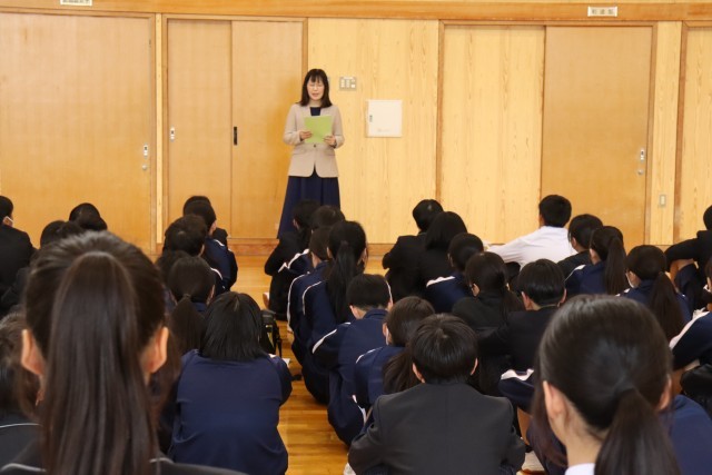 6時間目に、今年度最後の学年集会を開きました。1年生最後なので一人一人の先生から話を聞きました。みなさんの成長が見られたこの一年でした。4月には2年の先輩として頑張ってほしいと思います。
