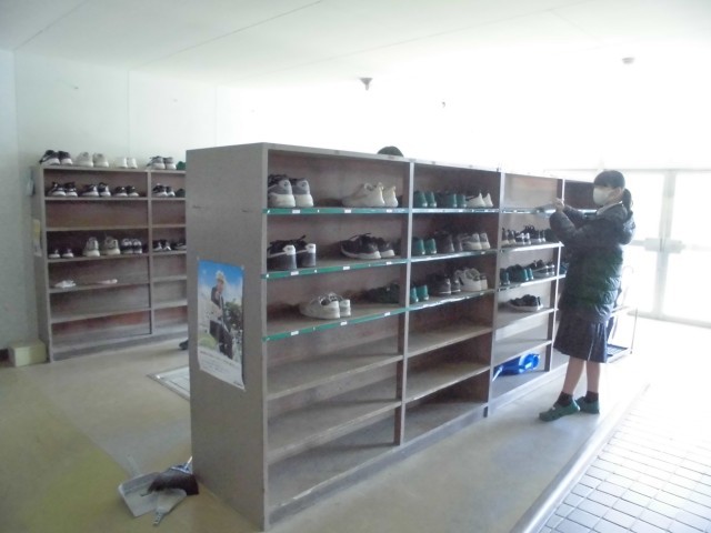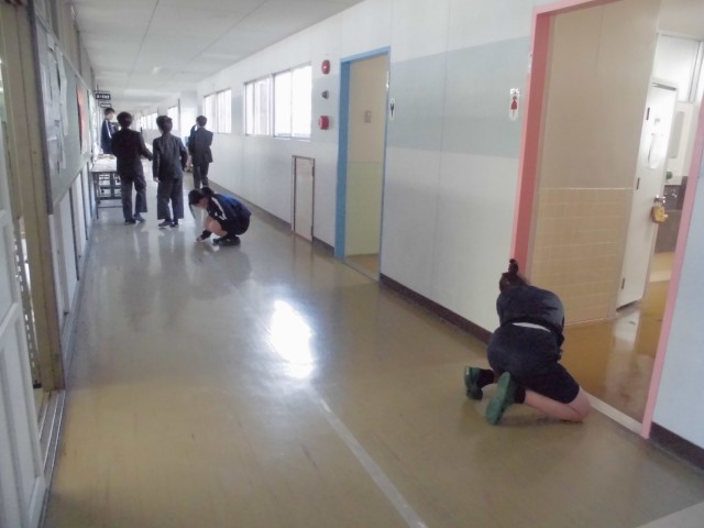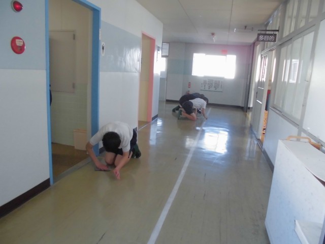 大掃除の様子です。下駄箱掃除では名前シールをはがしたり、廊下掃除では道具を使って頑固な汚れを落としたりしました。どの掃除場所でも、生徒たちは一生懸命掃除をしていました。今年度のいい締めくくりができました。