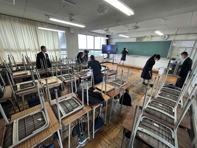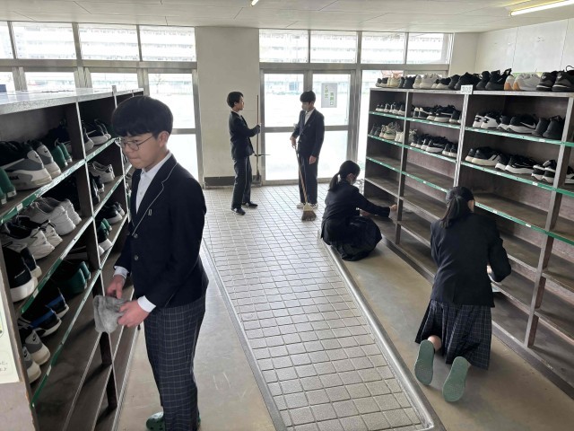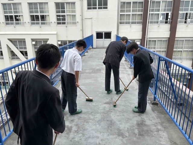 本日、今年度最初の清掃活動が行われました。3年生にとっても初めての場所を担当する生徒が多くいましたが、黙々と取り組む姿がとても立派でした。これからも学校のために頑張り続けられる集団であってほしいと思います。
