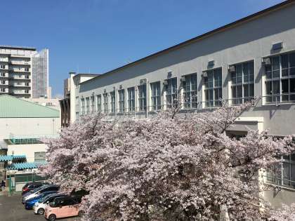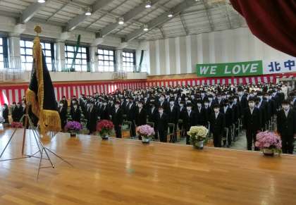 中庭の桜が咲き誇る中、新制服に身を包んだ新たな時代をつくる新入生が、北部中学校に入学しました。
