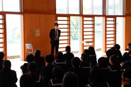 学年集会では新たに学年に加わった先生の紹介が行われ、生徒から質問も多く出ていました。