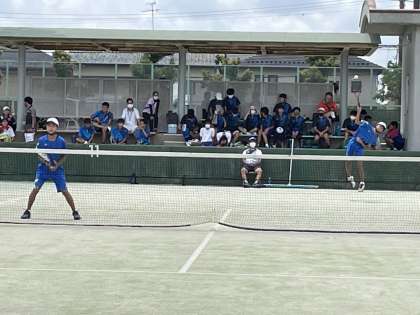 一宮市テニス場にて、市総合体育大会ソフトテニス団体戦が行われ、本校ソフトテニス部男子も出場しました。