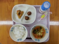 今日の献立は、麦ご飯、牛乳、カレーシチュー、ヒレカツ、ブロッコリーのドレッシング和えです。今日は豚ひき肉を使ったカレーシチューです。ヒレカツは、ご飯とカレーシチューといっしょに、カツカレーのようにしてもおいしく食べられます。ヒレカツは、豚肉のヒレというお腹に近い部位を使ったカツです。豚ヒレ肉は脂身が少なく、あっさりとしていてやわらかいという特徴があります。今日は日差しのいっぱい、放送室の給食風景です。