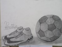 夏休みは1学期の作品を写真で紹介するウェブ展覧会を開催しています。この写真は1年生の作品で、「見つめて、感じて、描いて」というテーマで自分が愛してやまないもの、大好きなものを描いた作品です。どんな思いがこもっているものを描いたか想像しながらご覧ください(^^)/