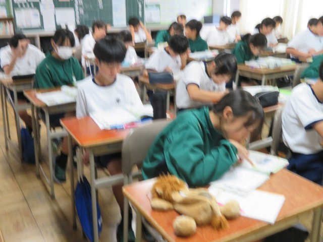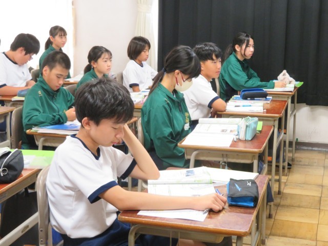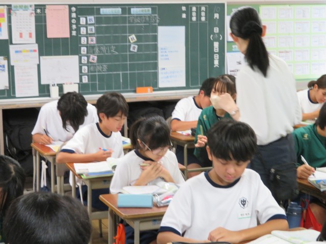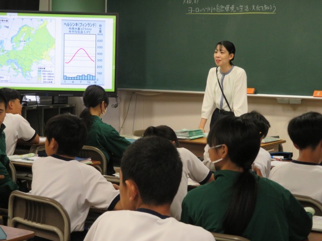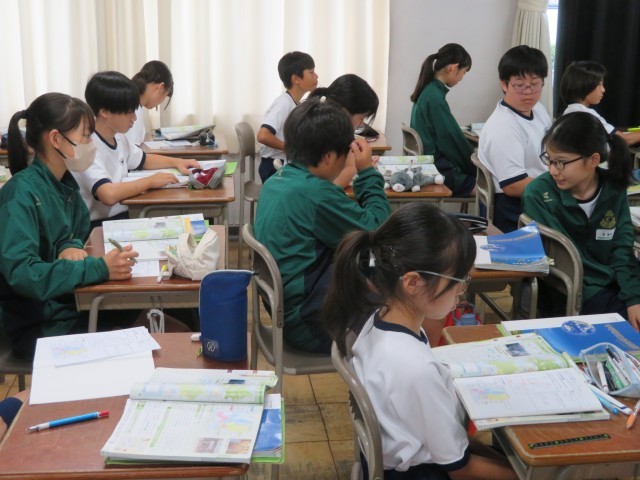 1年生の社会の授業のようすです。「ヨーロッパ州の自然環境と生活・文化を知ろう」というめあてで学習を進めていました。地図帳や資料を使って調べることができましたね