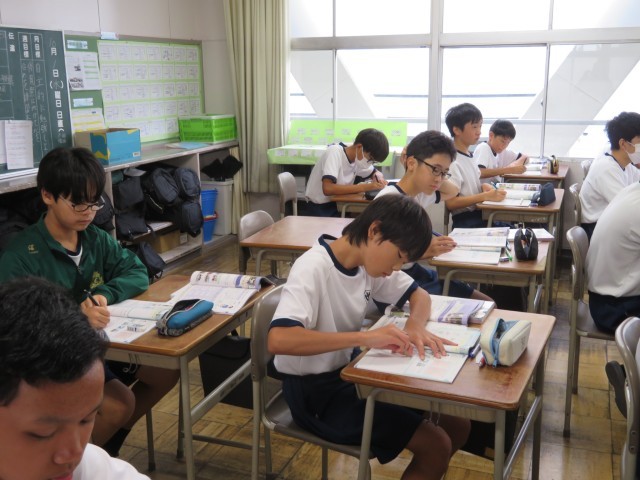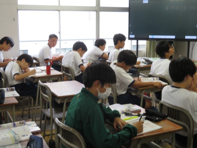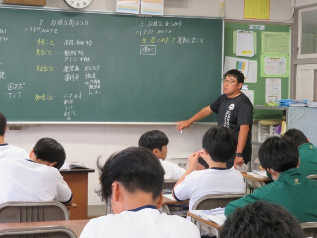 1年生男子の保健体育の授業のようすです。「運動やスポーツにはどのようなかかわり方があるだろうか」というめあてで学習を進めていました。
