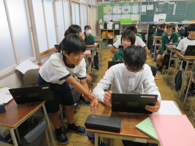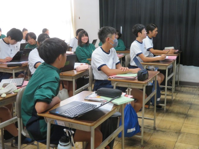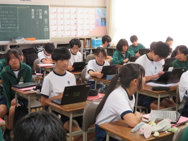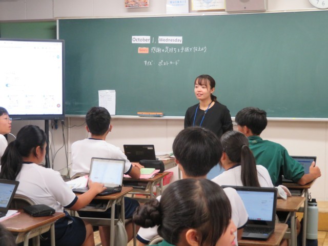 2年生の英語の授業のようすです。「感謝の気持ちを手紙にしたためて伝えよう」というめあてで学習を進めていました。英語の表現を使って、日ごろの感謝の気持ちを伝えることができましたね。