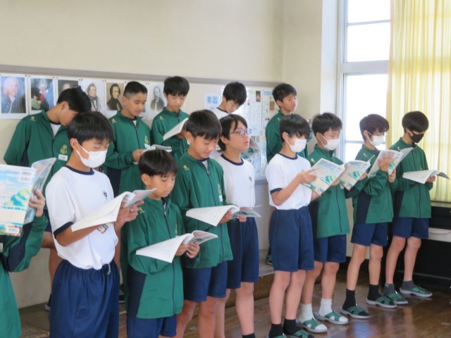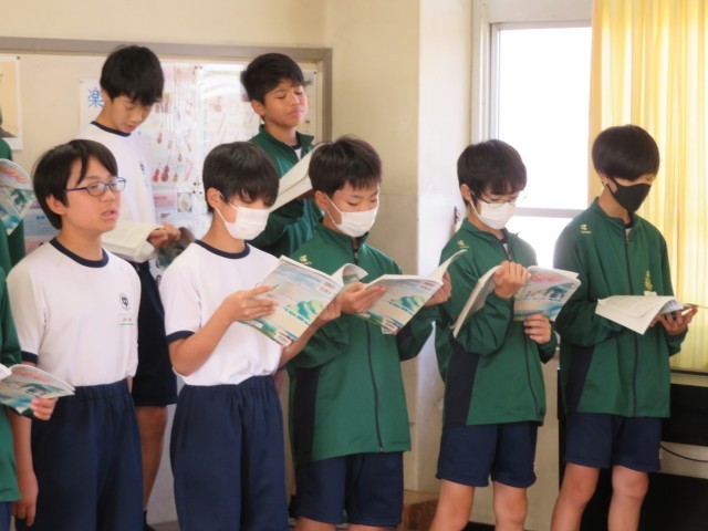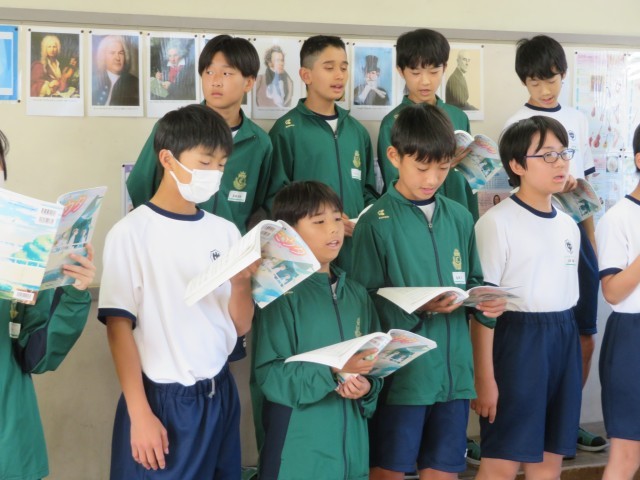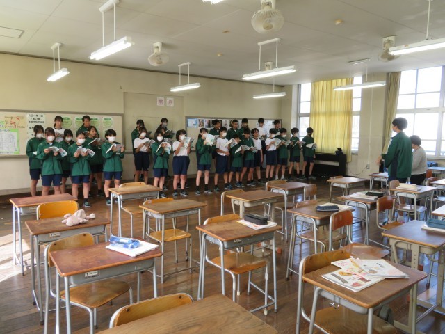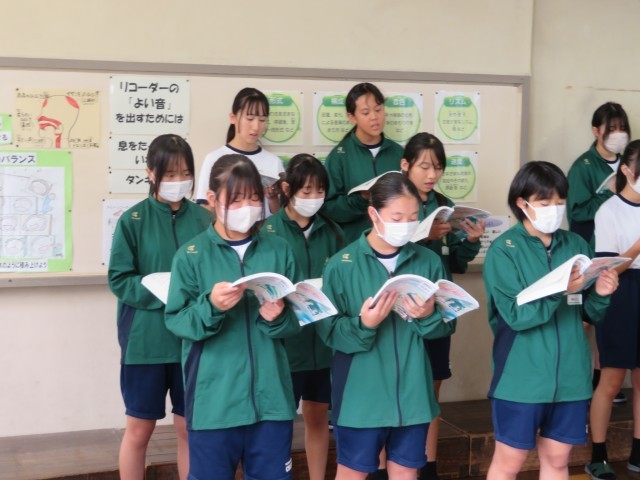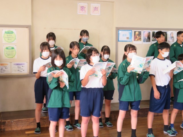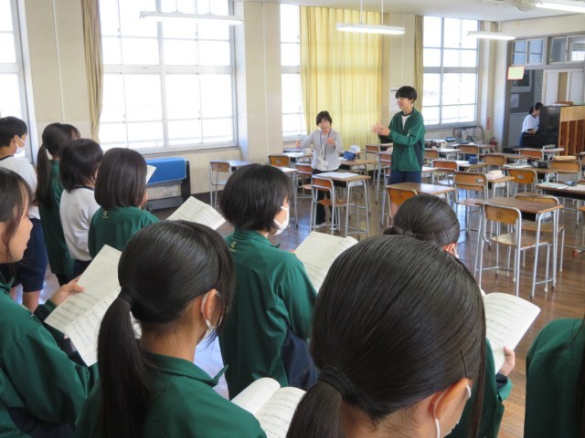 1年生の音楽の授業のようすです。合唱コンクールのクラス曲「大切なもの」の練習をしていました。今日のめあては「発声・発音に気をつけて、正確に演奏しよう」です。歌詞をしっかりと覚えて、思いを込めて歌えるようにがんばりましょうね。楽しみにしていますよ!