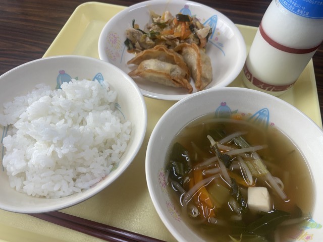 一番下の写真は、10/1の給食です。ぶたキムチいためや揚げギョーザが出たよ(^^)/