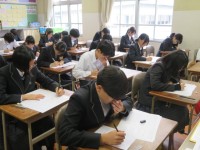 3年生の社会の授業のようすです。「選挙はなぜ大切なのか」というテーマで学習を進めていました。選挙の基本原則や衆議院と参議院の選挙制度について確認しながら、選挙の意義について考えを深めていきました。