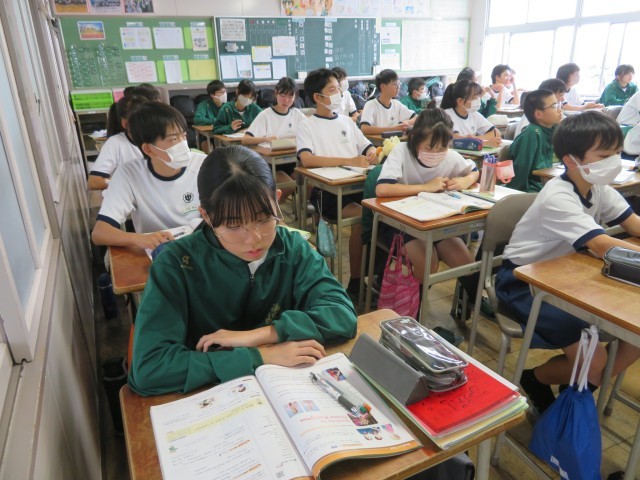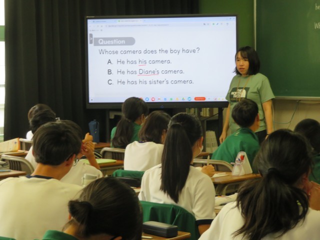 1年生の英語の授業のようすです。「『どちら?』『どれ?』とたずねたり、答えたりできるようになろう」というめあてで学習を進めていました。うまく英語の表現を使ってコミュニケーションすることができましたね。