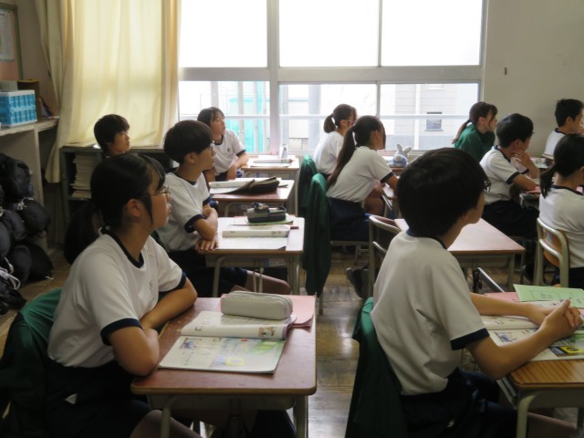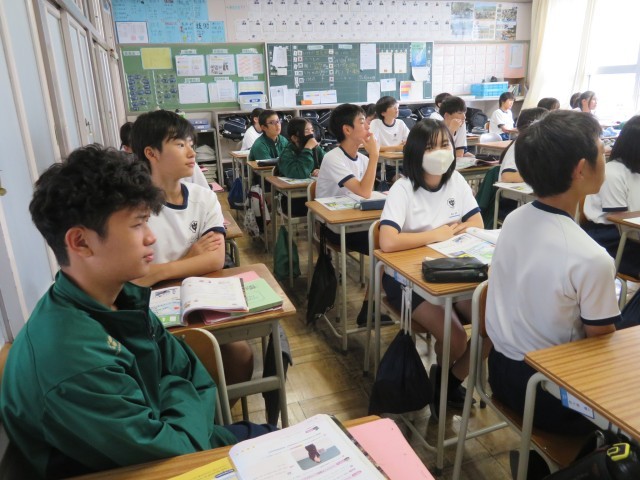 2年生の英語の授業のようすです。「ユニバーサルデザインについて知識を深めよう」というめあてで学習を進めていました。英語の文章や動画からユニバーサルデザインについての理解を深めることができましたね。