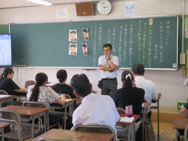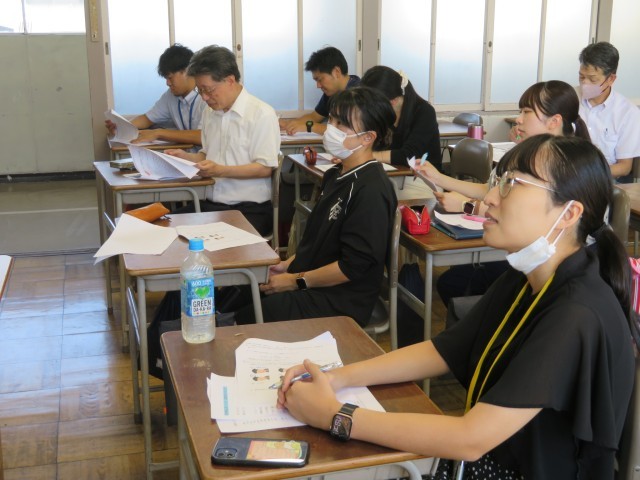 10月29日(木)に校内現職教育で進めてきた授業法のまとめの研究授業を2年生の国語で行います。市内の国語科の先生も参観し、「深い学び」の実現をめざした授業づくり、指導の在り方について研究協議を行います。今日は、生徒のみなさんが下校した後、2年生の教室に先生たちが集まってシミュレーション授業を行いました。今日出された意見やアイディアを基に、さらに生徒が活躍する授業になるように準備を進めていきたいと思います。