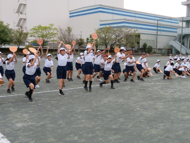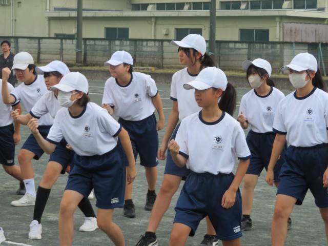 今日の6,7時間目の体育祭の練習は、応援パフォーマンスでした。群団の気持ちをぎゅっと一つにまとめて、元気いっぱいに表連できるようにがんばっていましたね。中中生の輝く姿が見られるのを楽しみにしていますよ(^^)/