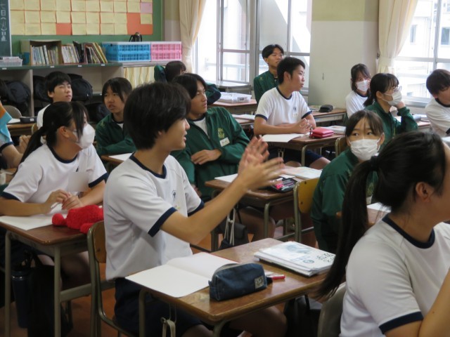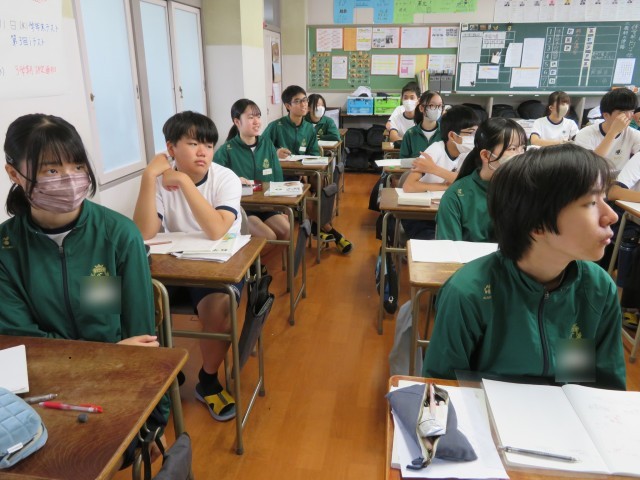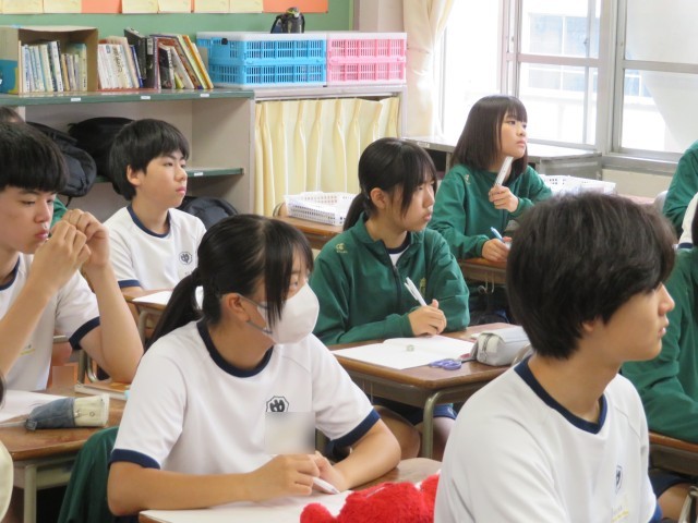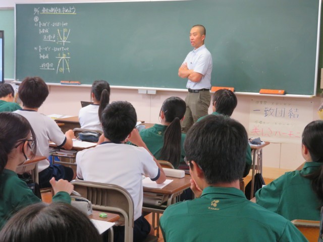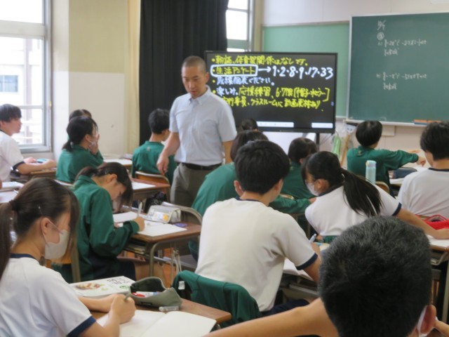 3年生の数学の授業のようすです。yがxの2乗に比例する関数について、変化の割合を調べました。今まで学んだyがン位比例する関数、反比例する関数、一次関数の変化の割合と比べて、どんなことが似ていて違っていたか意識しながら学ぶことができたかな。