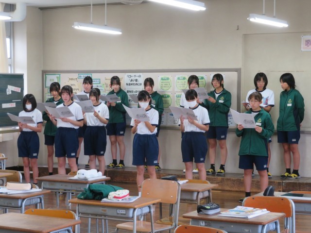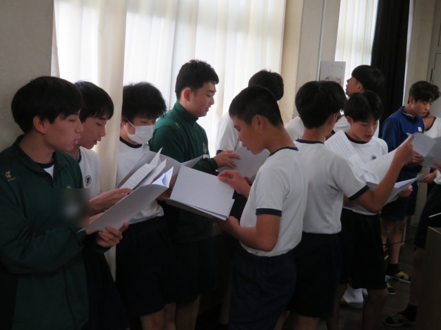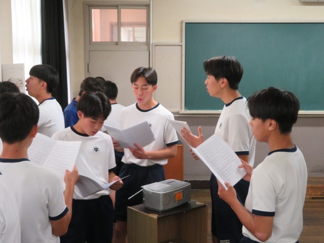 3年生の音楽の授業のようすです。「声部の役割や全体の響きに関心をもち、音楽表現を創意工夫しよう」というめあてで合唱コンクールのクラス曲の練習に取り組んでいました。女声と男声に分かれて、音程と響きを意識しながら練習を積み重ねていました。曲名は2023のNコンの中学校の部課題曲になった『Chessboard』の二部合唱です。すてきな合唱を作り上げていってくださいね。