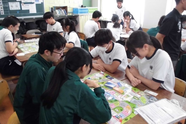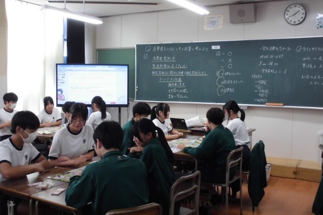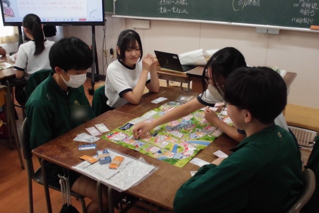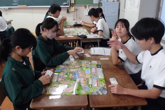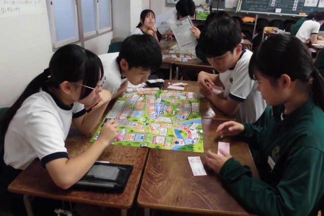3年生の家庭科の授業のようすです。「消費者トラブルとその対策を考えよう」というめあてで学習を進めていました。授業の後半では、ライフサイクルゲーム(生涯設計のススメ)を使って、楽しく学びを振り返ることができたようです。すごろく形式のゲームを通じて、人生の疑似体験をしながら金融や消費者トラブルについて必要な知識を学ぶことができましたね。