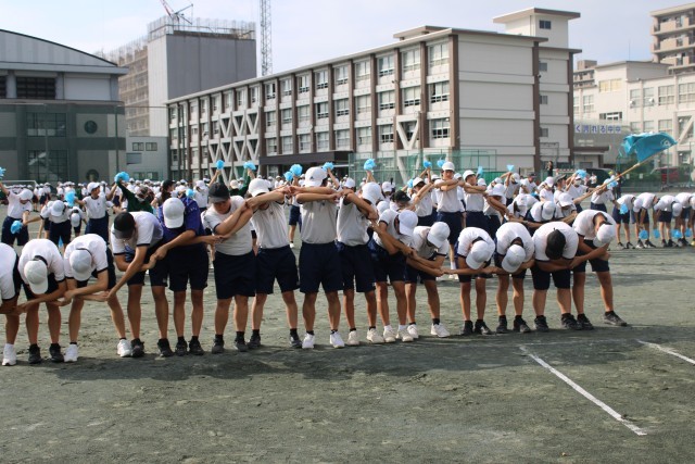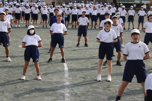 本日も群団パフォーマンス練習がありました。水色群団の活動の様子です。全体で大きな声を出すことを意識し、振りのタイミングを合わせることを中心に練習を進めていました。今日の最後の通し練習では、今まで以上に声が出るようになったり、振りがそろってきたりしていました。本番まであと少し。実行委員を中心に気持ちを高めながら練習を進めていきます。