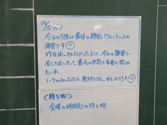 10月15日(水) すべてを出し切って(^^)/【1年黒板メッセージ】