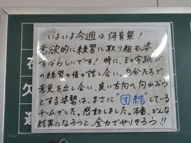 10月15日(水) 団結に感動!【1年黒板メッセージ】