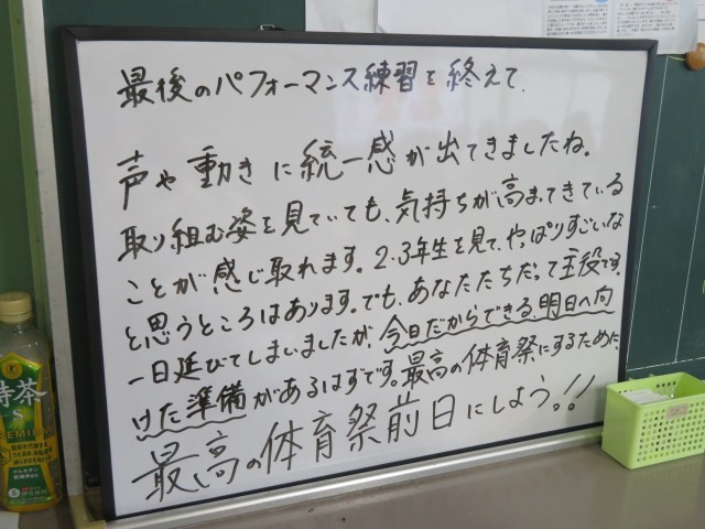 10月16日(木) 最高の体育祭にするために【1年黒板メッセージ】