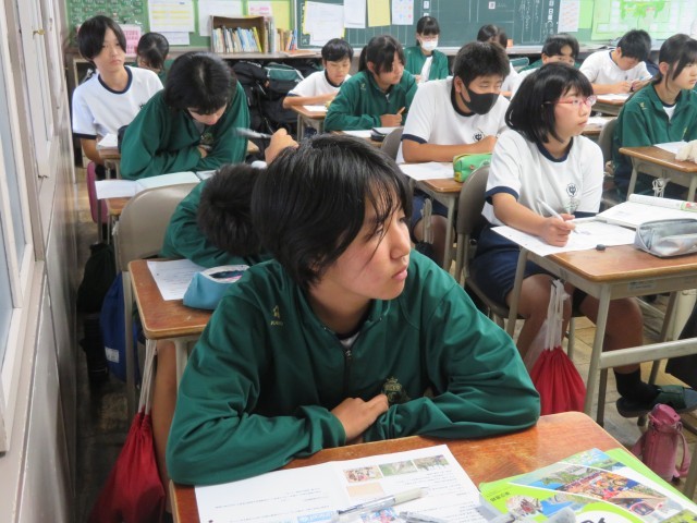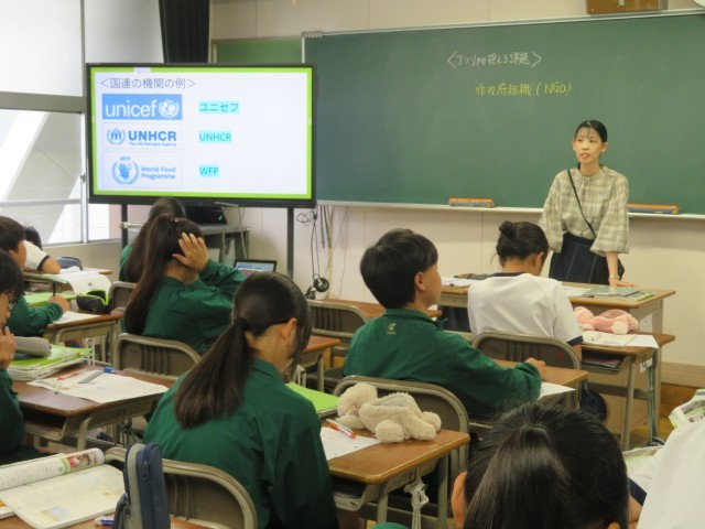 1年生の社会の授業のようすです。アフリカの抱える課題について学習を進めていました。非政府組織NGO (Non-Governmental Organization)について学んでいました。