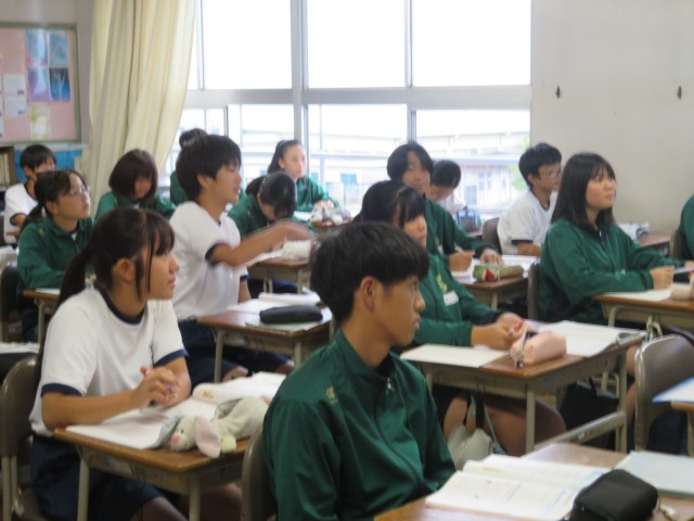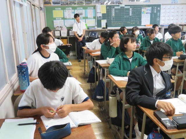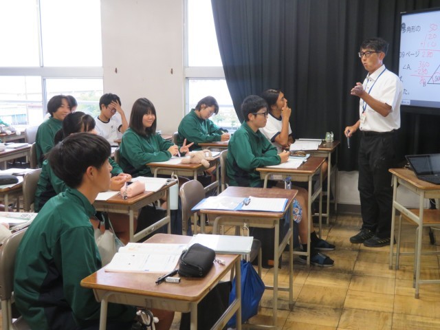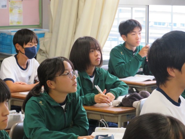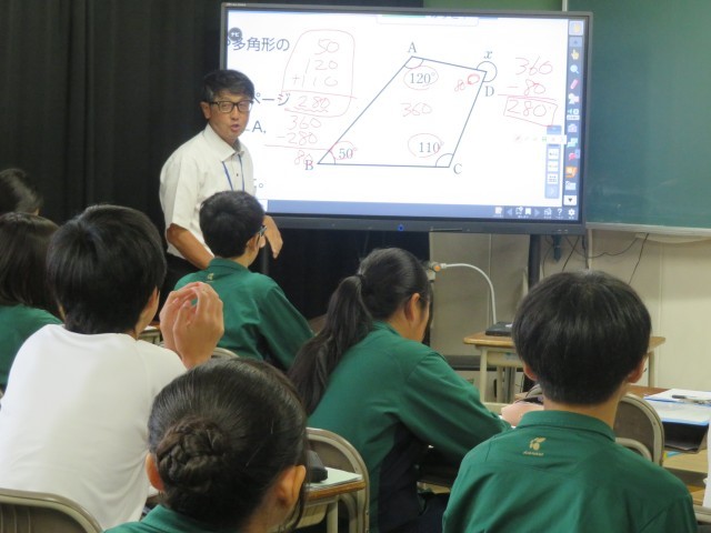 2年生の数学の授業のようすです。「角の大きさを考えよう」というめあてで学習を進めていました。ただ角度をこたえるのではなく、求め方やその根拠となる図形の性質について答えられるようにがんばっていましたね。