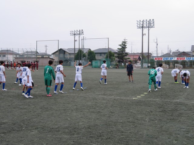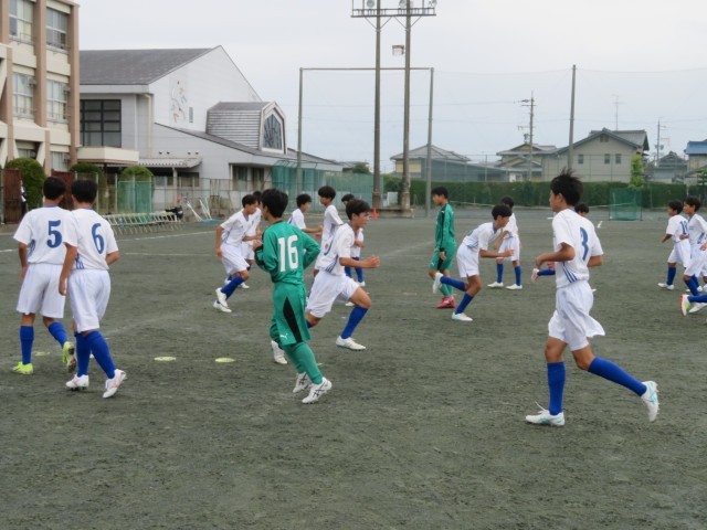 サッカー部はm京南部中学校グランドを会場に行われたU-14大会に参戦し、神守・佐織チームと南部中と対戦しました。写真は南部中学校との対戦前のようすです。一進一退が繰り返される見ごたえのある試合展開で、2次リーグに駒を進めることができたようです。成長できる経験を積むことができましたね。