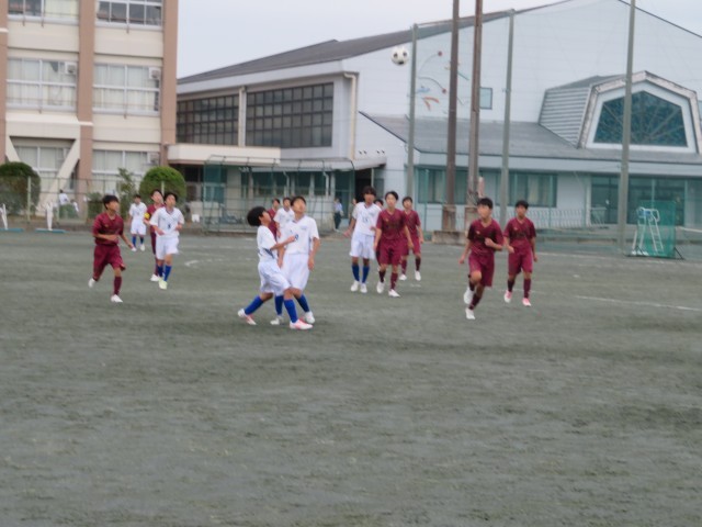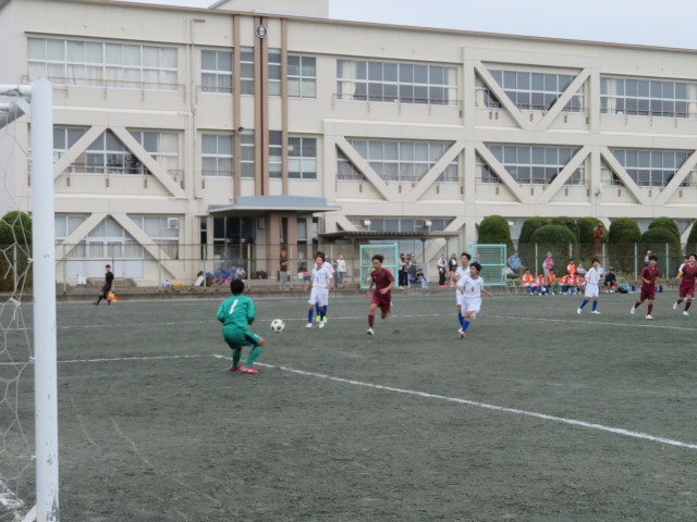 サッカー部はm京南部中学校グランドを会場に行われたU-14大会に参戦し、神守・佐織チームと南部中と対戦しました。写真は南部中学校との対戦のようすです。一進一退が繰り返される見ごたえのある試合展開で、2次リーグに駒を進めることができたようです。成長できる経験を積むことができましたね。