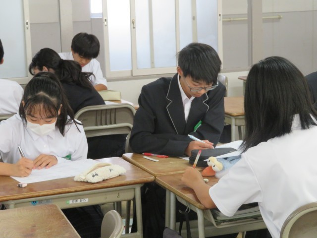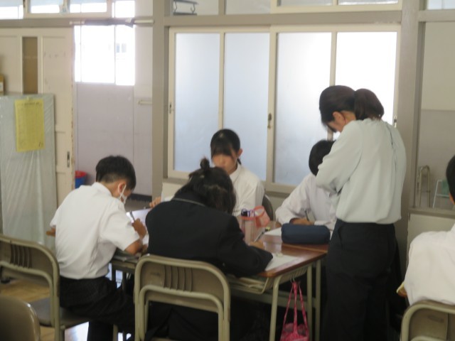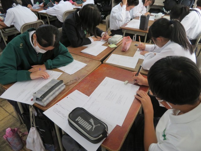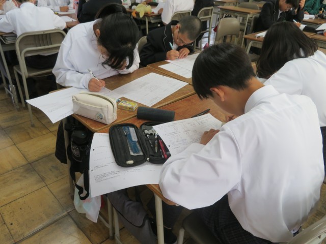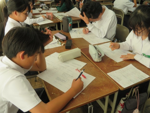 1年生の数学の授業のようすです。方程式を解く問題や文章問題をたくさん解いて力を伸ばそうとがんばっていましたね。