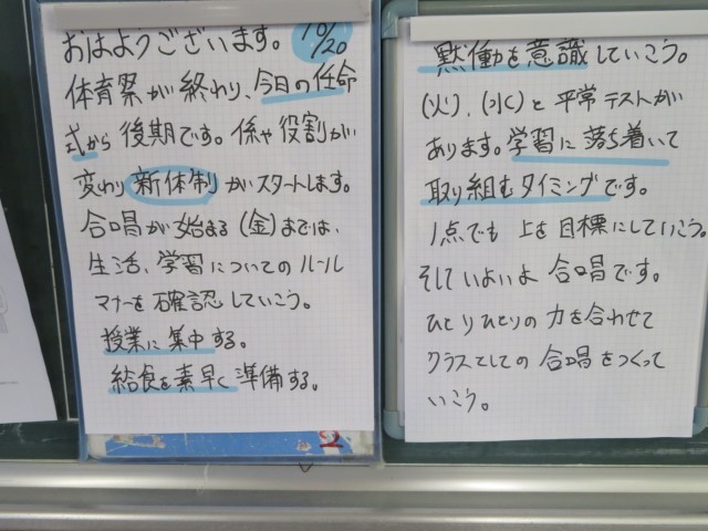 10月20日(月) 今日から新体制!【2年黒板メッセージ】