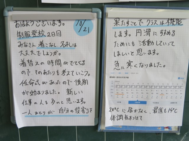 10月21日(火) 自分の役割を考えて【2年黒板メッセージ】
