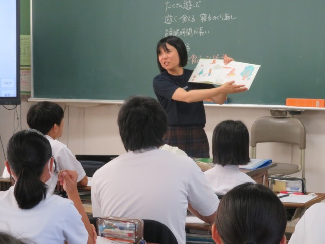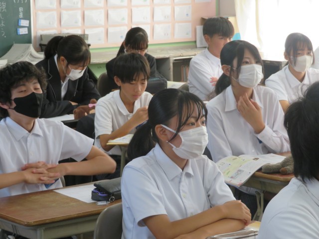 2年生の昨日の家庭科の授業のようすです。「幼児の生活と遊びについて考えよう」というめあてで学習を進めていました。