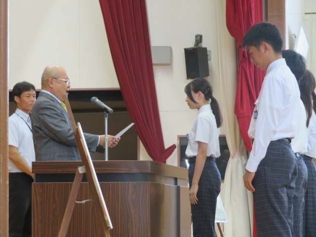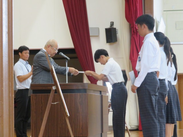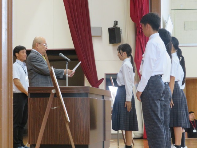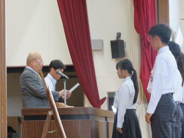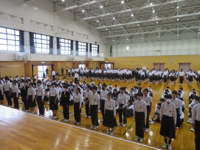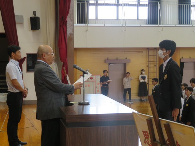 後期の生徒会と学校のリーダーの任命式を行いました。「みんなで築く誇れる中中」をみんなの手で作り上げていきましょう!