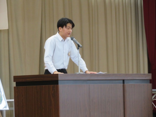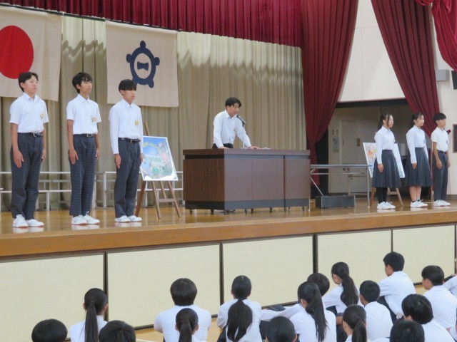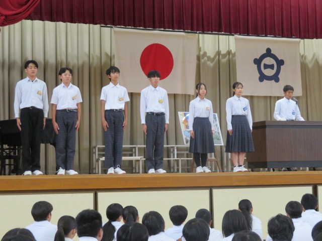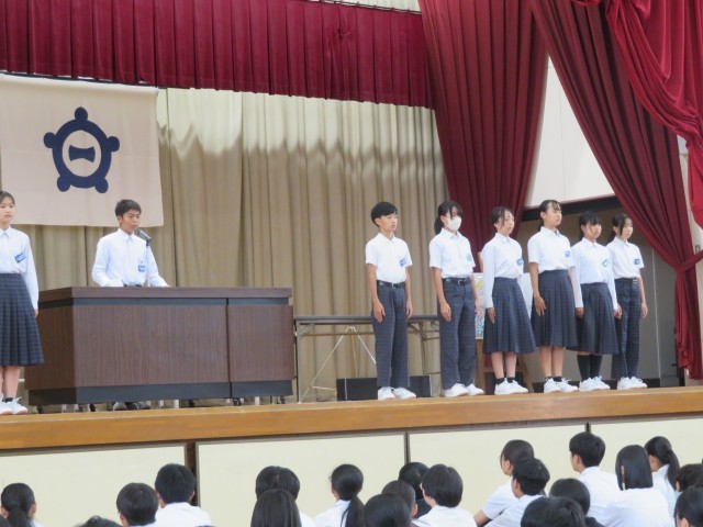 新旧生徒会の引継ぎ式の中で、2人の生徒会長があいさつをしてくれました。前期のみなさんお疲れさまでした。後期もさらに生徒の手で中部中学校を盛り上げていけるように頑張っていきましょう!